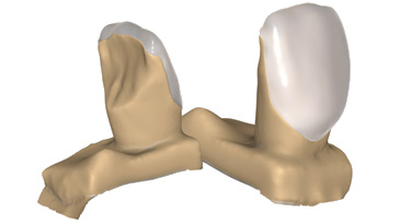 歯科用CAD は、歯の被せ物や入れ歯などをコンピュータ上で正確に設計するソフトのことです。スキャンされた患者さんのお口のデータを読み込み、歯の形・咬み合わせ・位置関係などを考慮しながら、歯科医師や歯科技工士が3Dデザインを設計します。これを元にして、実際のラミネートベニアなどを精巧に作製することができます。